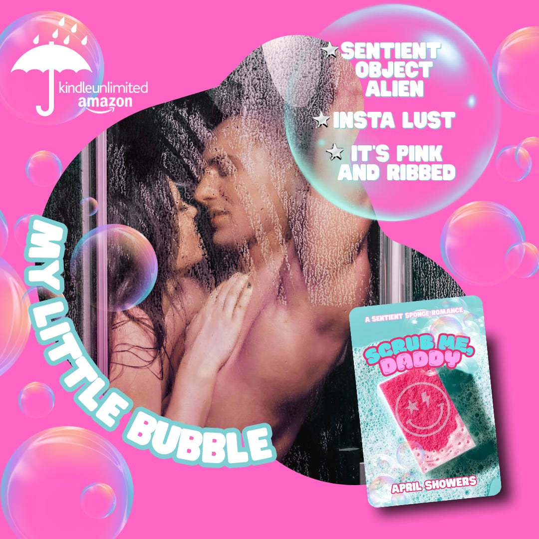 I joined the ranks of sentient object romances with my alter ego, April Showers, and wrote some smiley face sponge smut that may be loosely based on the scrubbiest sponge father on the market. ;)